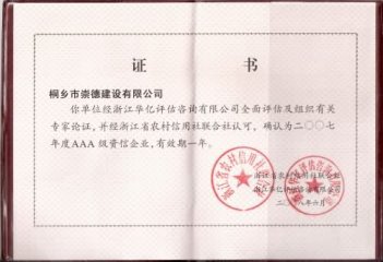 浙江省工商企業信用AAA級守合同重信用單位