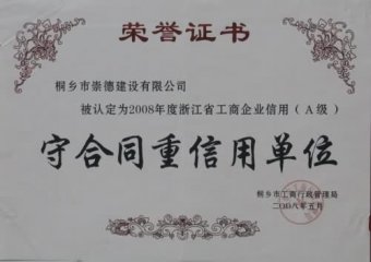 2008年度浙江省工商企業信用(A級)守合同重信用